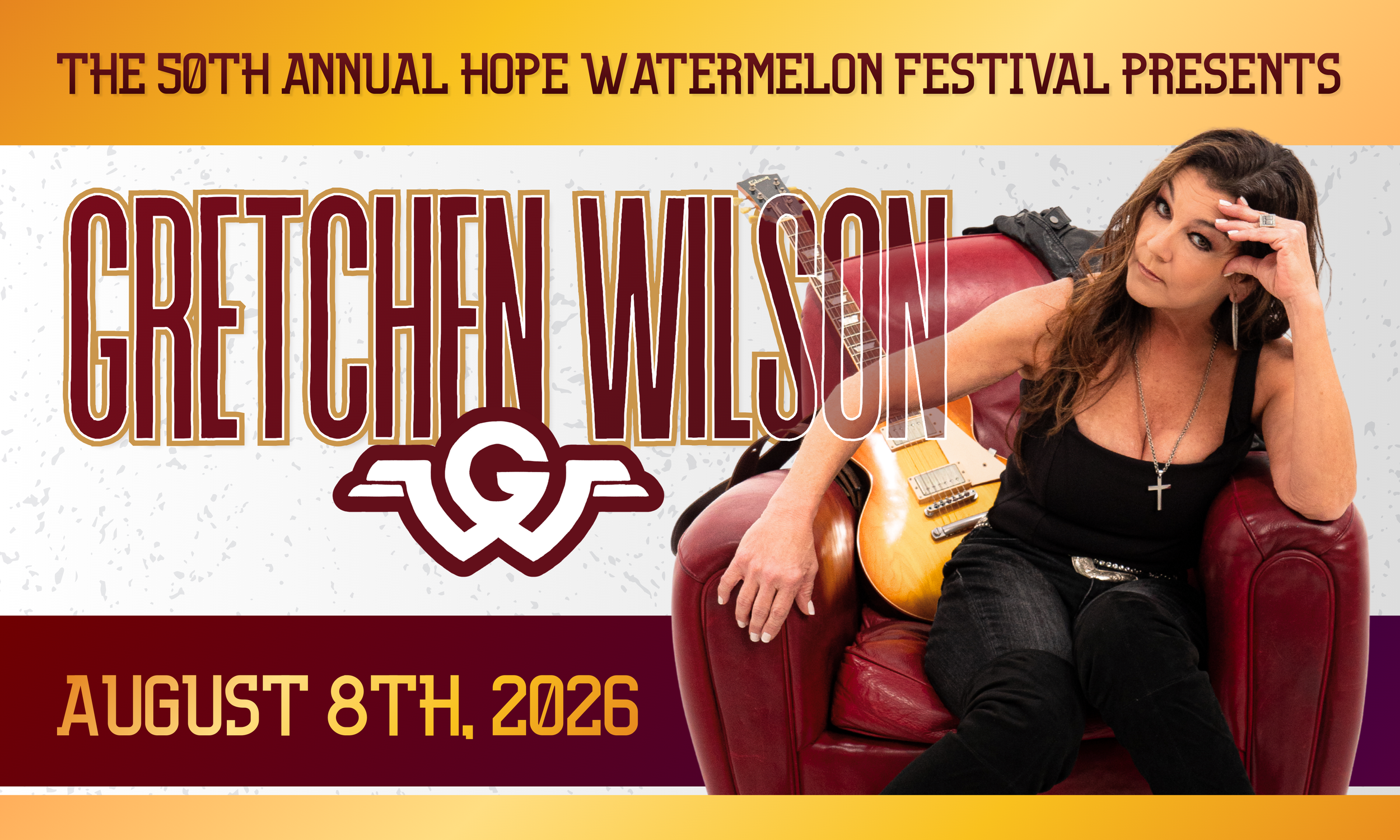 “We are thrilled to welcome Gretchen Wilson to headline the 50th Annual Hope Watermelon Festival,” said Christy Burns, Executive Director of the Hope-Hempstead County Chamber of Commerce. “Her powerful voice, incredible stage presence, and iconic hits will make this milestone year one to remember. We look forward to celebrating the 50th anniversary of the festival with a night of unforgettable music.”